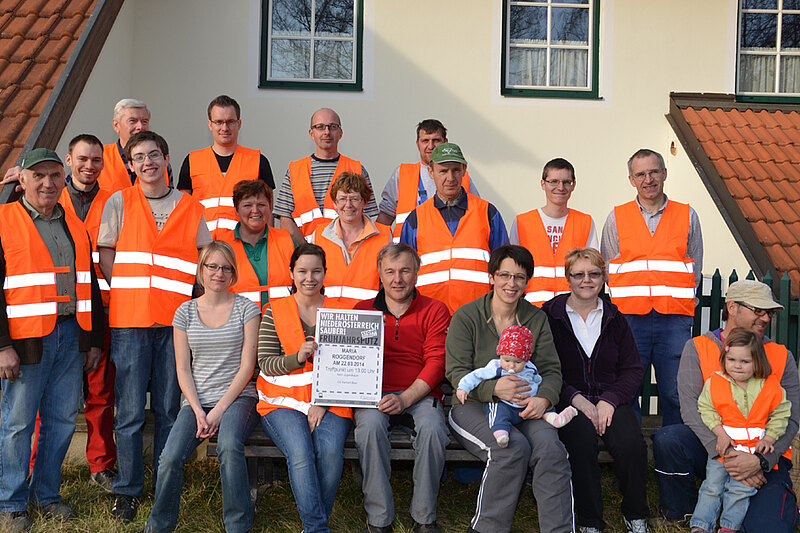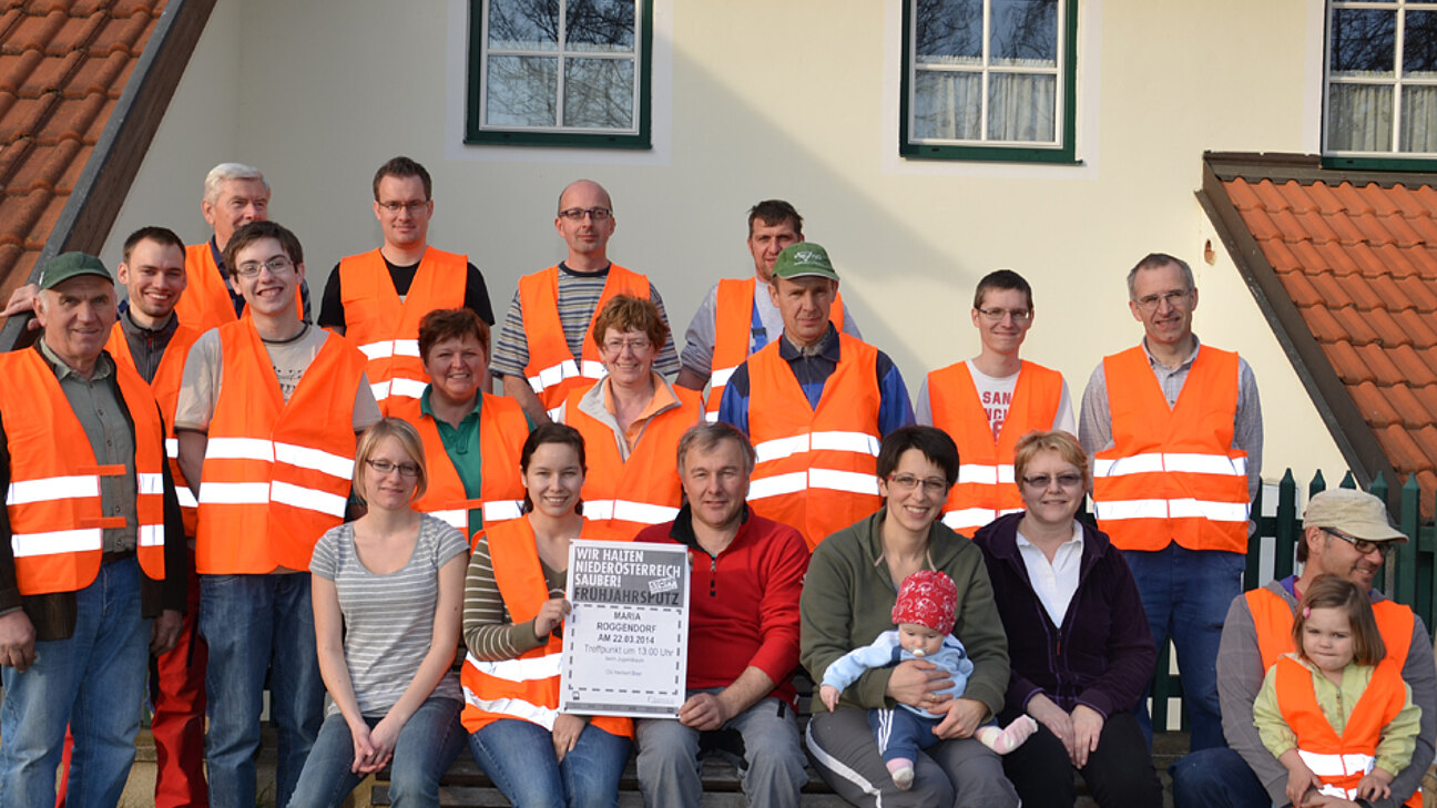 Nach der Ausstattung mit Warnwesten, Handschuhen und Müllsäcken, alles zur Verfügung gestellt von der Aktion Stopp Littering der NÖ Abfallverbände, machten sich die 20 Dorfbewohner an die Arbeit. Man teilte sich in mehrere Gruppen. Die Mitglieder der Jagdgesellschaft übernahmen das Reinigen der Windschutzanlagen, wo naturgemäß viele angewehte Kunststofffolien einzusammeln waren. Die Jugendgruppe war wieder entlang der umliegenden Landesstraßen und Entwässerungsgräben mit dem Einsammeln des achtlos weggeworfenen Mülls von Autofahrern beschäftigt. Die restlichen Teilnehmer reinigten den Schüttberg, den Weg und den Vorplatz des Friedhofes und die Altglassammelinsel.